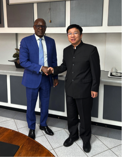 图四,王平卫与工业化和贸易部执行董事Michael HUMAVINDU(左二)合影留念